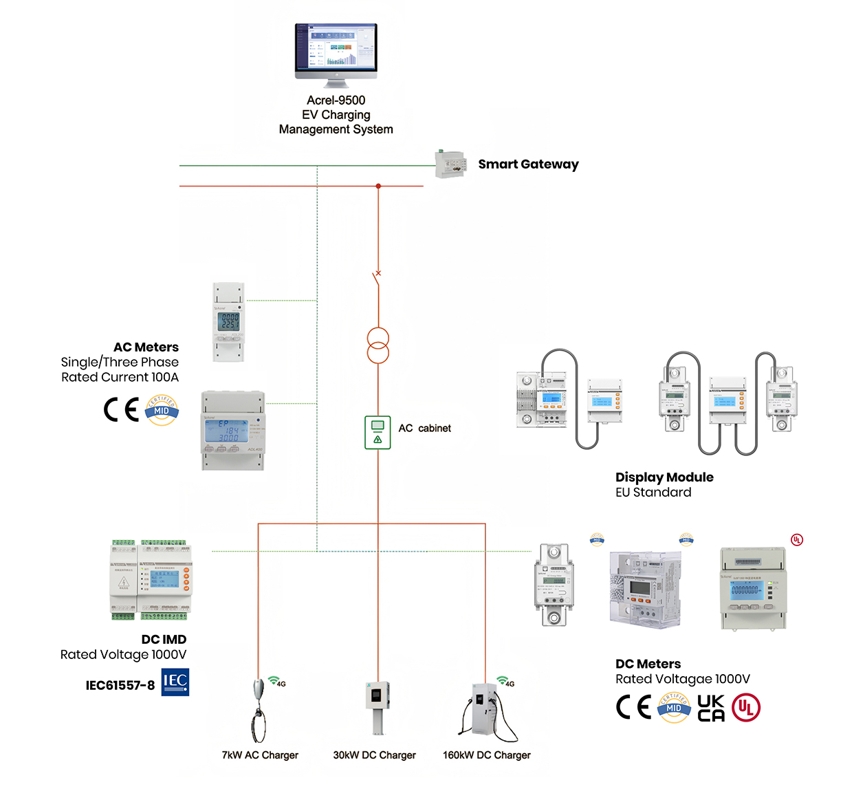 Ved at integrere avancerede måleenheder og overholde strenge internationale standarder sikrer Acrel pålidelig og præcis energimåling, hvilket understøtter den udbredte anvendelse og effektiv drift af EV-opladningsinfrastruktur.
