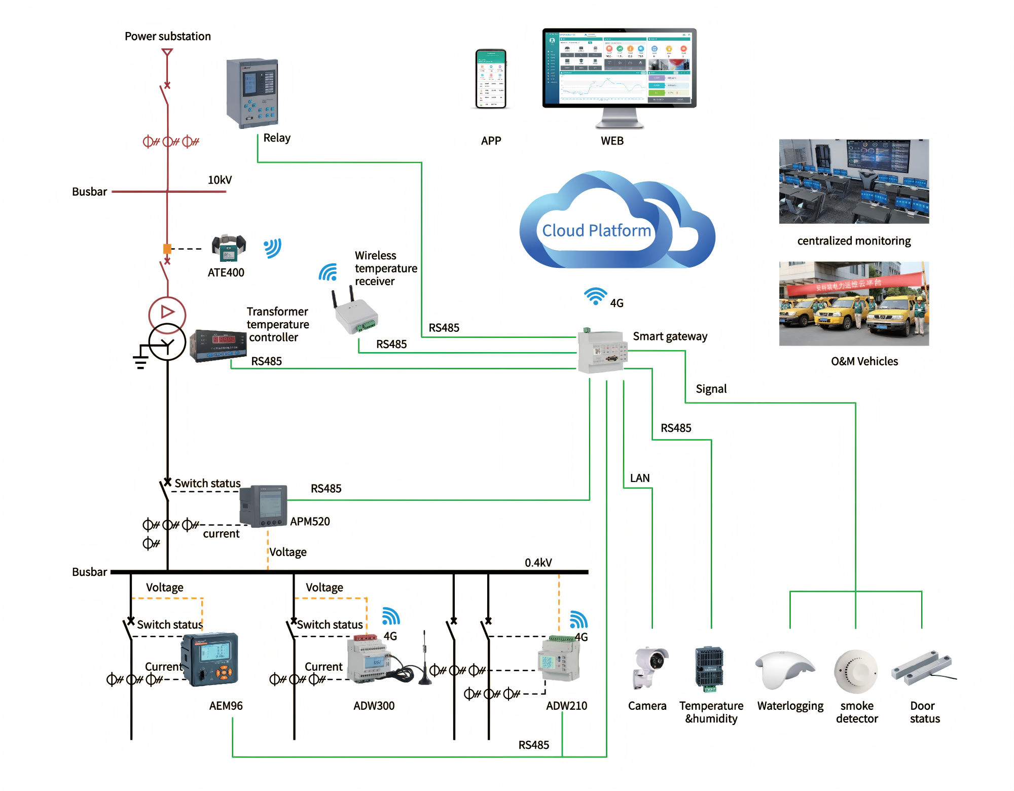 Multifunktionspanelmålere indsamler og transmitterer strømdata i realtid og understøtter sømløs integration med tredjeparts DCS/PLC-systemer og enheder fra Schneider, Siemens eller ABB. Edge-gateways samler data og overfører dem til Acrel EMS-platformen, der tilbyder brugere webbaserede dashboards, mobilapps til fjernovervågning og avanceret analyse til forudsigelig vedligeholdelse.