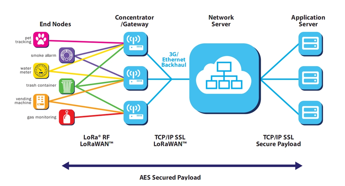 LoRa understøtter punkt-til-punkt kommunikation og stjernenetværk og realiserer centraliseret indsamling og videresendelse af data fra flere noder gennem gateway-enheder.