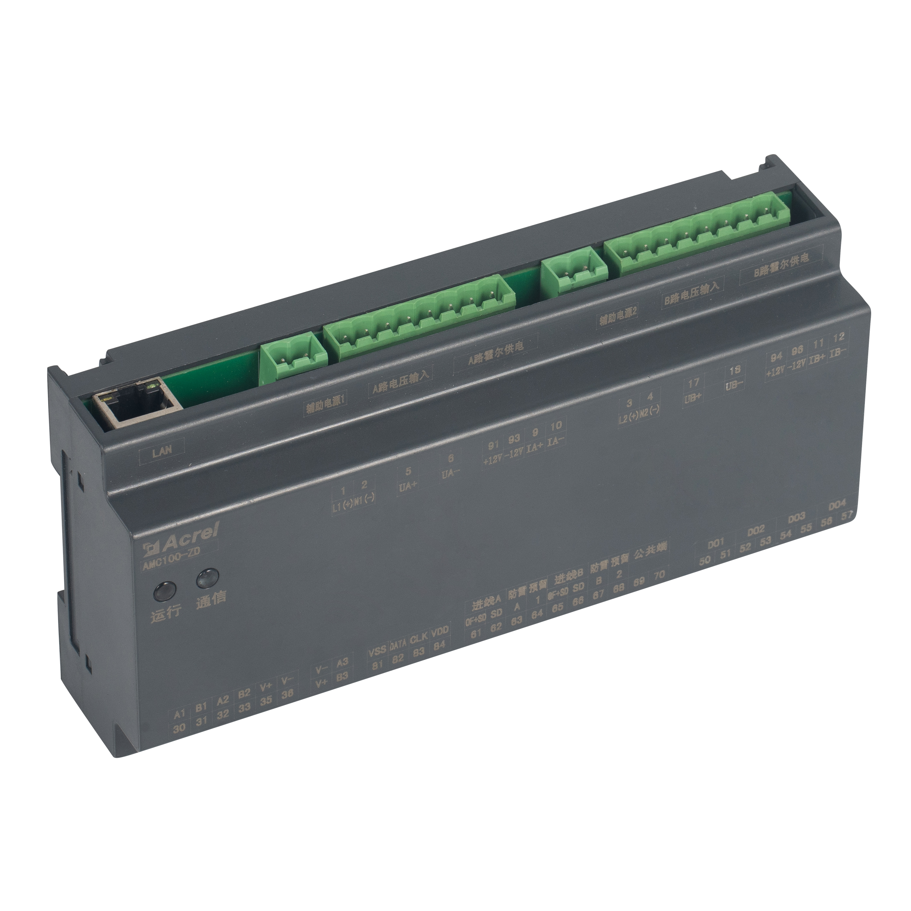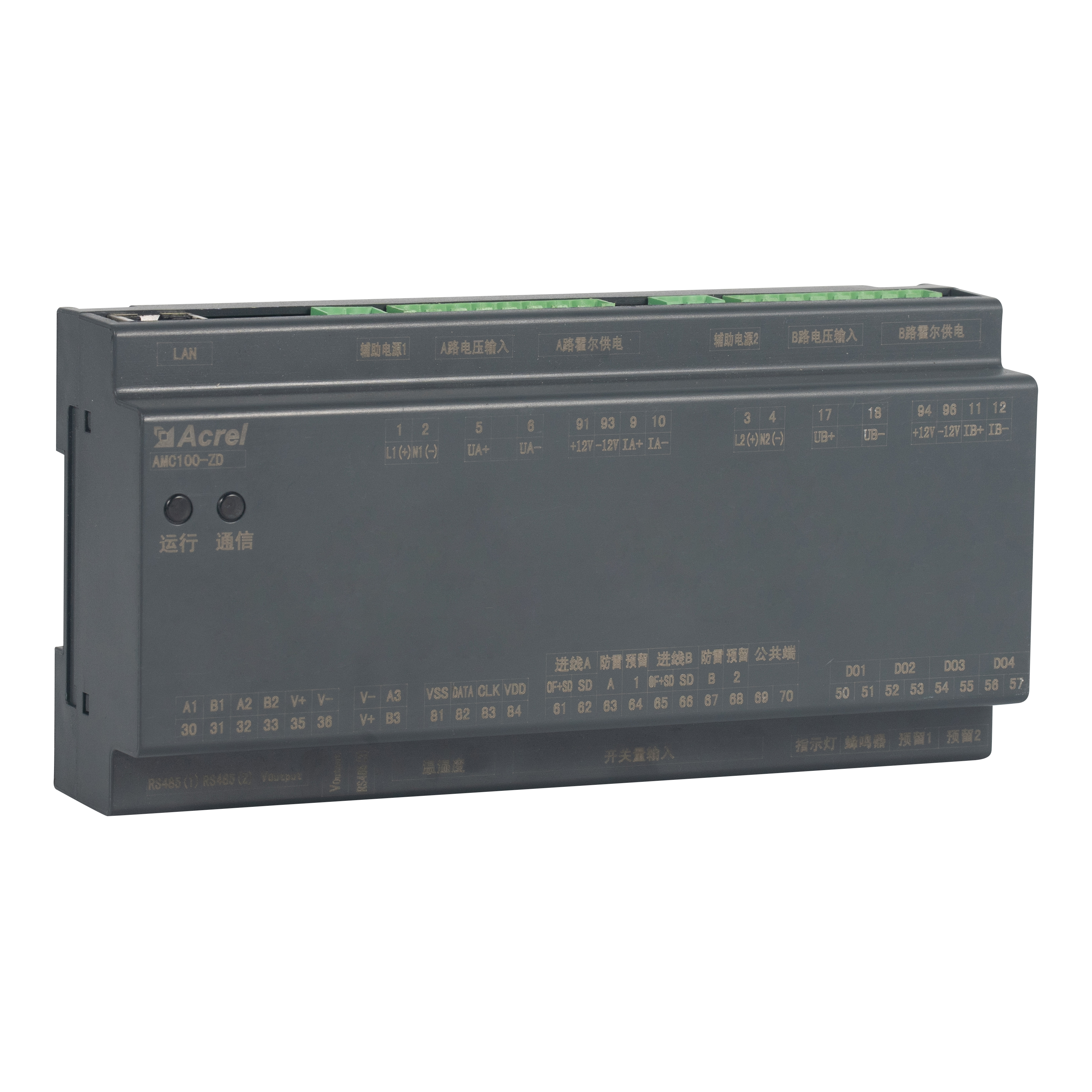 AMC100-ZD er Acrels DIN-skinne DC præcision strømfordelingsovervågningsenhed konstrueret til datacenterserverracks. Den sporer samtidig fulde elektriske parametre for A B dobbelte trefasede feeds, 192 udgående kredsløb, 8 DI / 4 DO statuspunkter, 2 lækagekanaler, 1 temperatur-fugtighedssensor og 63 harmoniske. Tre RS485 Modbus-RTU-porte muliggør sømløs BMS/DCIM-integration. Kompakt 180 mm hus, ±0,5 % nøjagtighed, alarmtærskler pr. kanal og øjeblikkelig lyd-lys-advarsel reducerer energispild og nedetid, hvilket gør det til det skalerbare hjerte i grønne datacenter DC-busway- eller PDU-overvågningsløsninger.