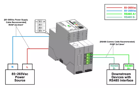 Det understøtter flere upstream-kommunikationsmetoder, herunder 4G/WiFi/Ethernet/LoRa/LoRaWAN og downstream RS485-kommunikation. Enheden er CE-certificeret og kan få adgang til op til 25 enheder.