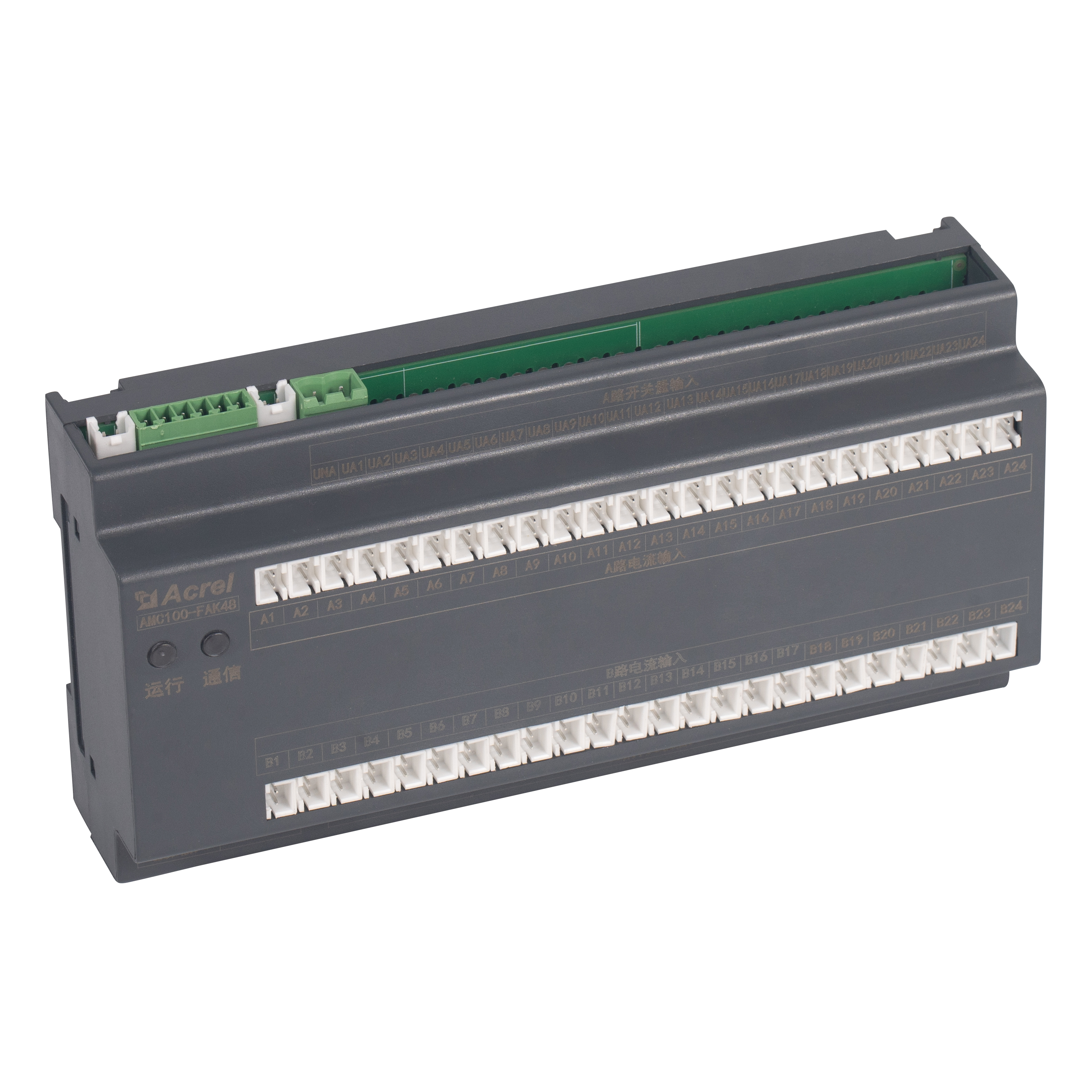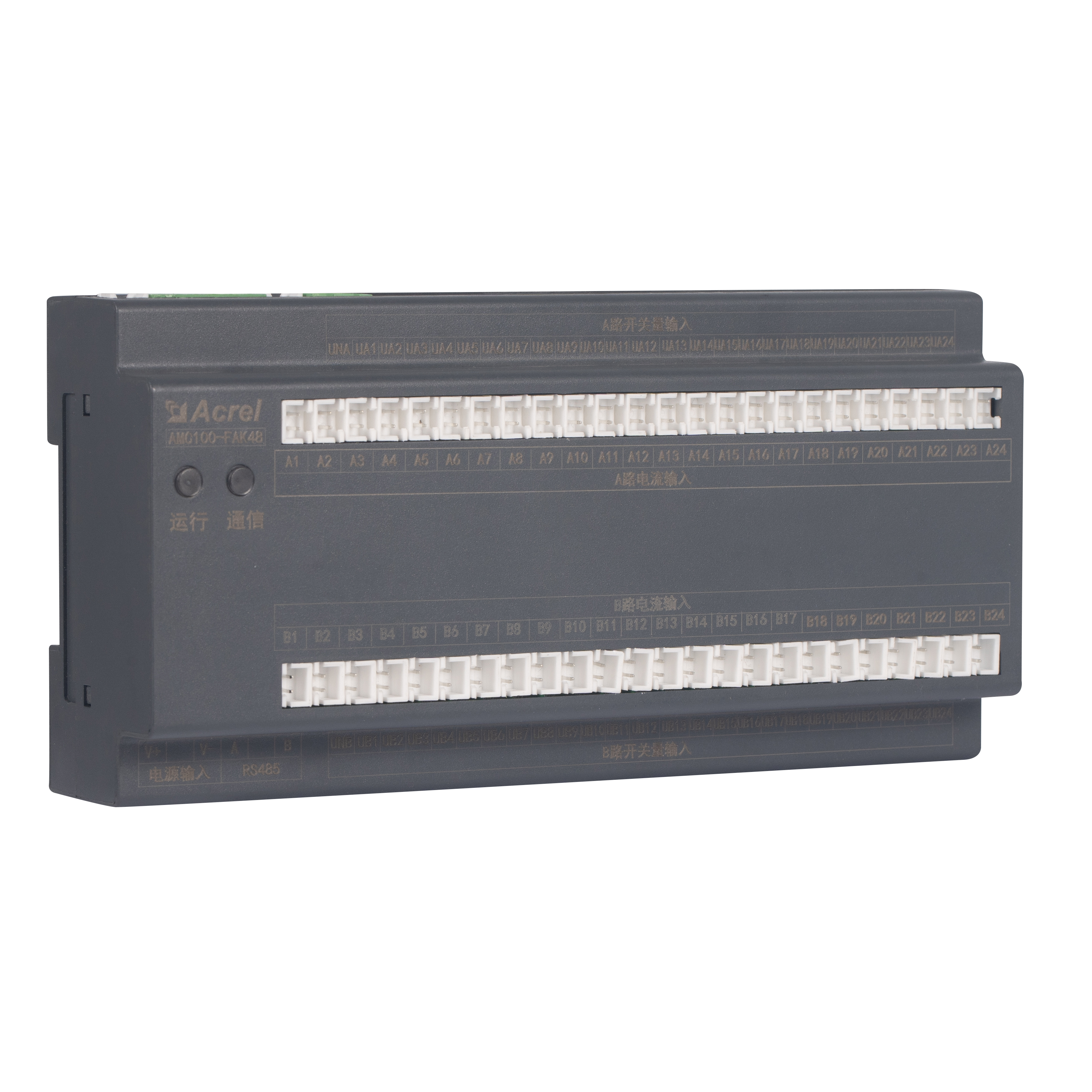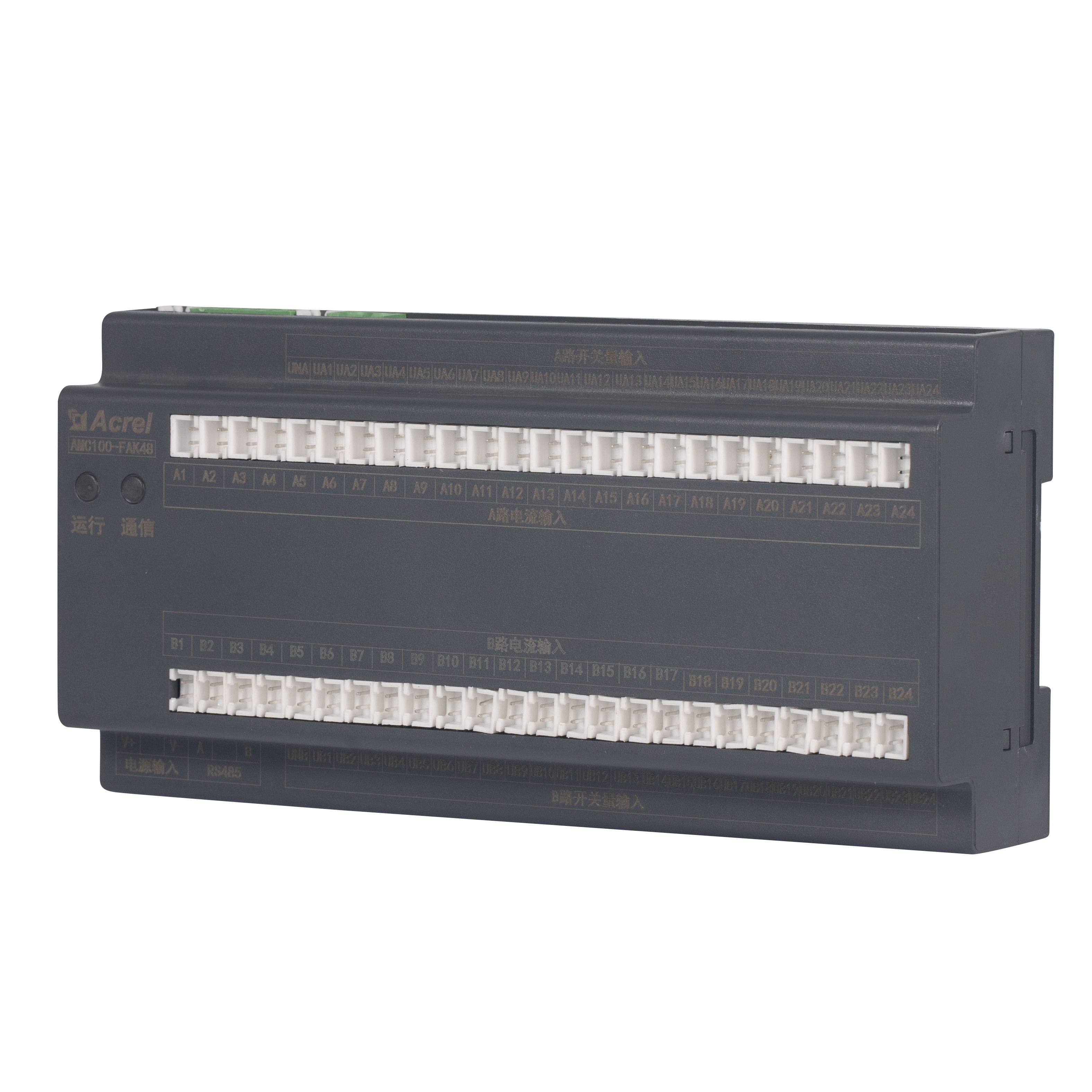 AMC100-FAK48 er Acrels DIN-skinne AC præcision strømfordelingsovervågningsenhed konstrueret til datacenterserverracks. Den sporer samtidig fulde elektriske parametre for A B dobbelte trefasede feeds, 192 udgående kredsløb, 8 DI / 4 DO statuspunkter, 2 lækagekanaler, 1 temperatur-fugtighedssensor og 63 harmoniske. Tre RS485 Modbus-RTU-porte muliggør sømløs BMS/DCIM-integration. Kompakt 180 mm hus, ±0,5 % nøjagtighed, alarmtærskler pr. kanal og øjeblikkelig lyd-lys-advarsel reducerer energispild og nedetid, hvilket gør det til det skalerbare hjerte i grønne datacenter AC-busway- eller PDU-overvågningsløsninger.