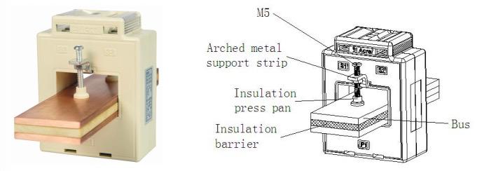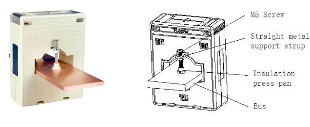 | Specifikation | Nominel strømforhold | Præcisionsgrad og tilsvarende nominel belastning (VA/Ω) | Lige gennem tums | Bus spec(mm)/nummer | Maks. kabel udvendig diameter (mm) | Installation | ||
